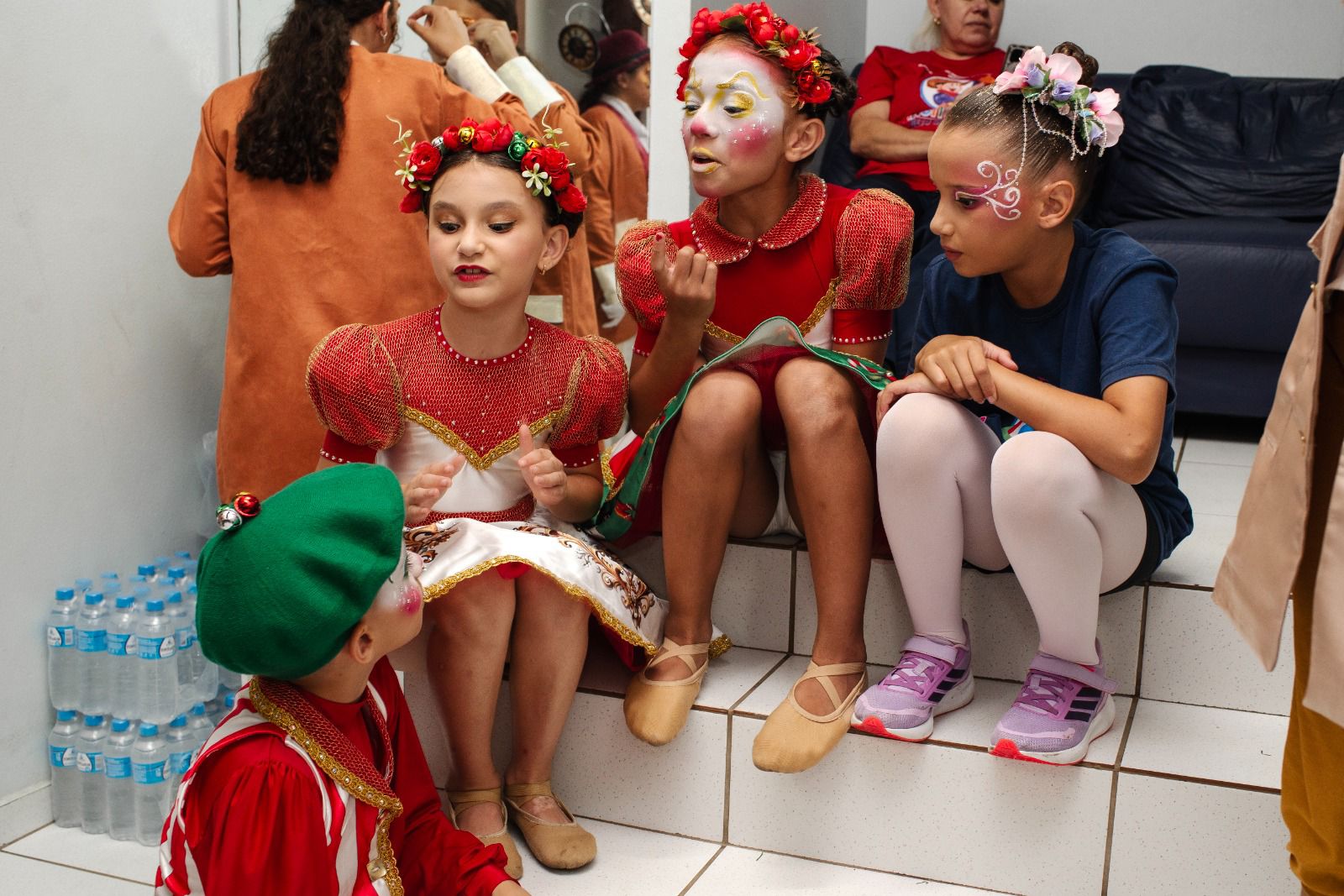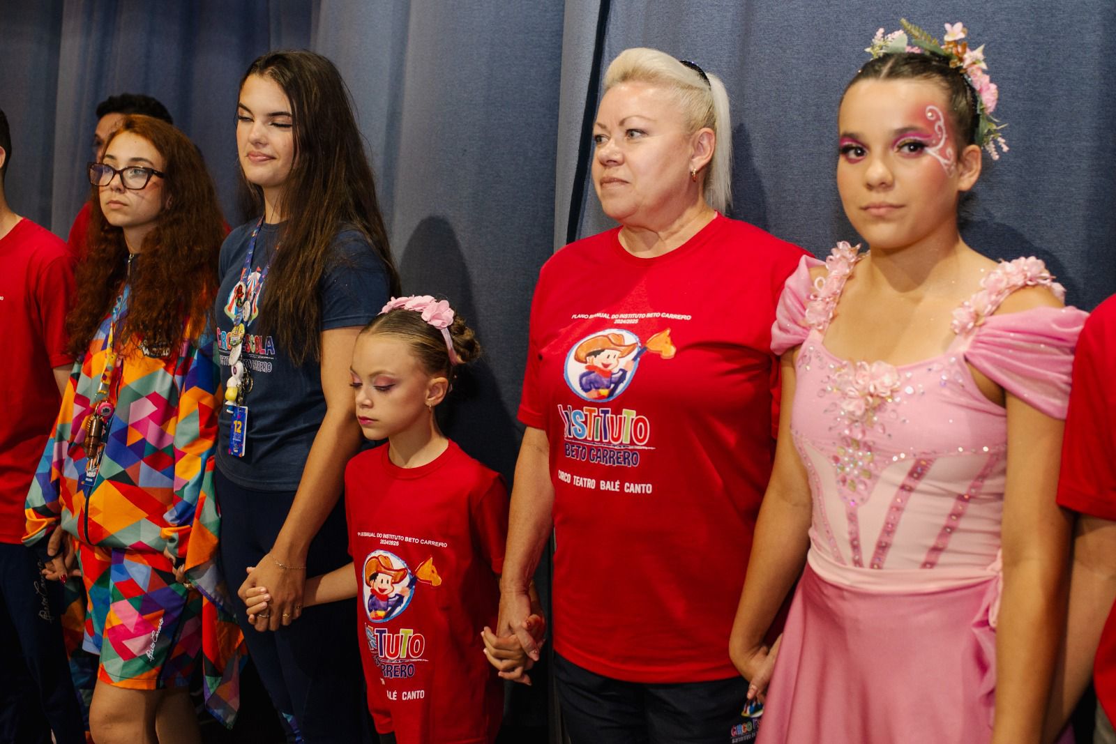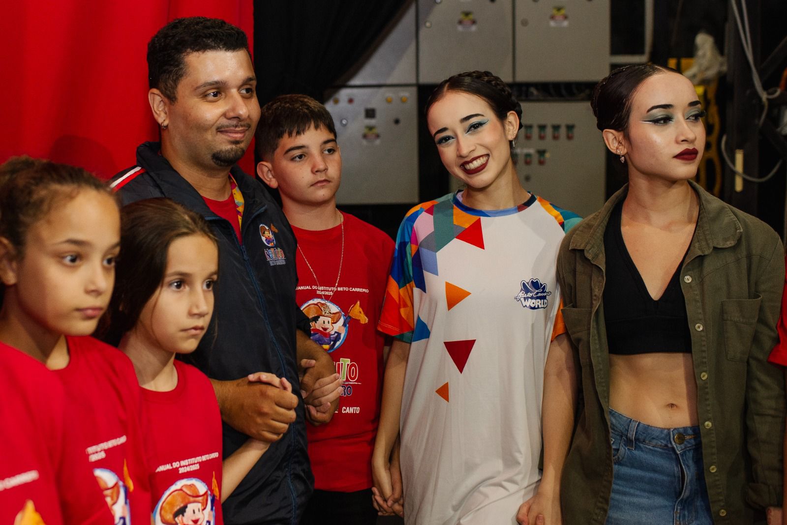 Os professores estiveram presentes até o último instante, ajustando figurinos, acalmando corações e reforçando a confiança de cada aluno. Foi um verdadeiro trabalho de equipe, onde ninguém estava sozinho.